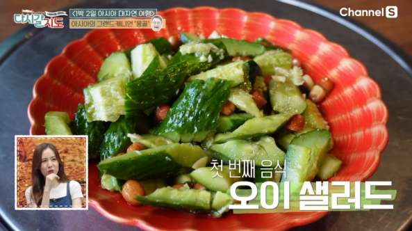 신선한 오이와 마늘, 견과류를 곁들인 상큼한 샐러드입니다.