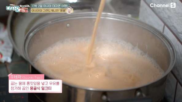 수테차는 끓는 물에 홍찻잎을 넣고 우유를 첨가해 끓인 몽골식 밀크티입니다.