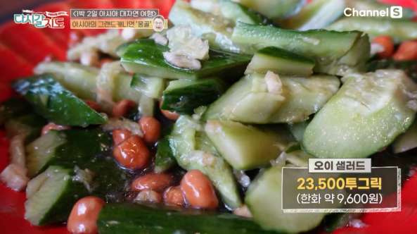 양고기 요리 46500투그릭. 오이샐러드 23500투그릭.