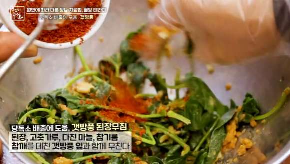 된장, 고춧가루, 다진마늘, 참기름, 참깨를 데친 갯방풍 잎과 함께 무쳐주세요.