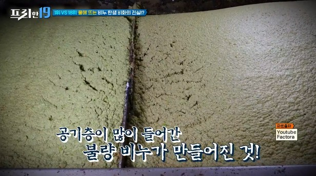 공기층이 많이 들어간 불량 비누가 만들어진 것.