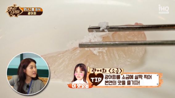제대로 표현하기 힘든 회 맛, 소금과 함께 먹으니 바로 알겠다고 하네요.