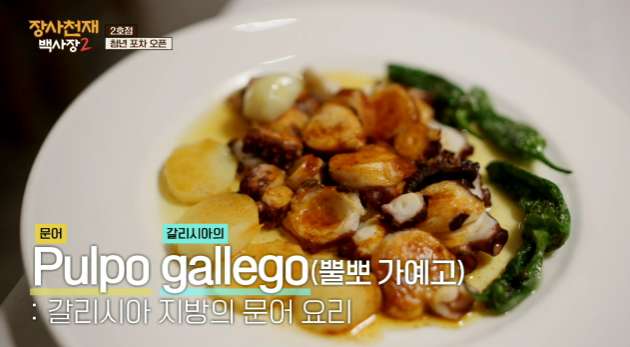 뿔뽀 가예고는 갈리시아 지방의 문어 요리로 삶은 문어에 올리브유, 파프리카 가루를 뿌린 요리입니다.