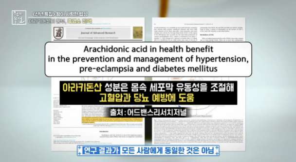 어드밴스리서치저널에 따르면 아라키돈산 성분은 몸속 세포막 유동성을 조절해 고혈압과 당뇨 예방에 도움을 줍니다.