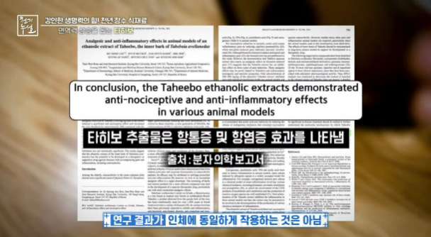 분자의학보고서에 따르면 타히보 추출물은 항통증 및 항염증 효과를 나타내고,