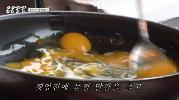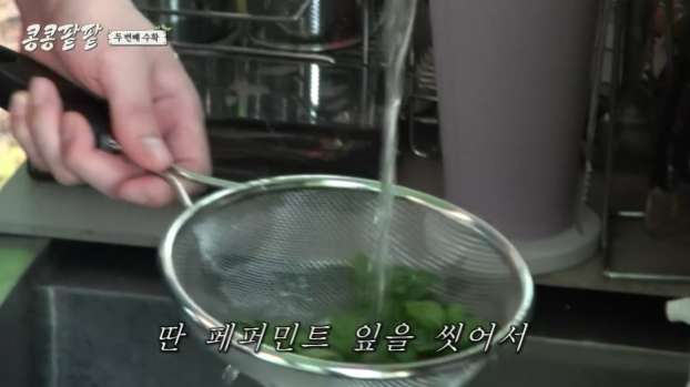 기방이 깻잎을 씻는 동안, 경수는 깻잎전 들어갈 속 재료를 준비한다.