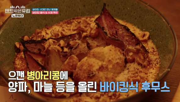 으깬 병아리콩에 양파, 마늘 등을 올린 바이킹식 후무스로 운드레달 특산물인 염소치즈를 추가해 더욱 특별하다고해요.