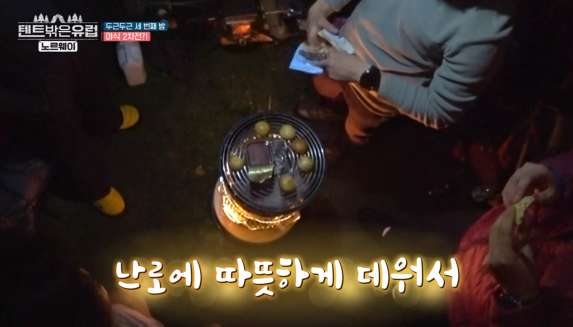 짭짤한 장조림과 디저트로 달달한 슈크림 빵을 난로에 올리고.