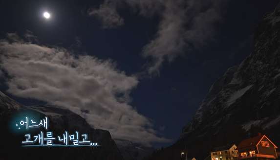 그 옆에 총총히 떠오른 별. 밝은 달과 별 아래 잠드는 구드방엔의 마지막 밤.